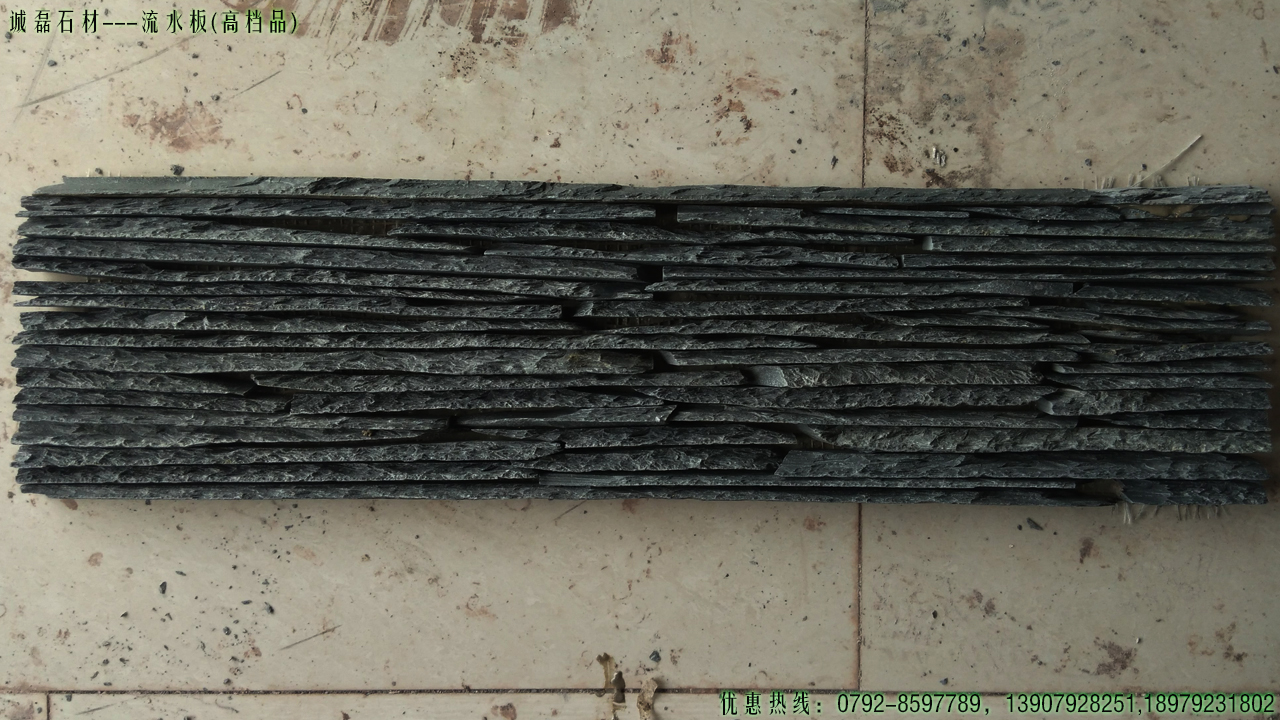 流水板:組合板的一種,主要由黑色板巖平面拼接而成,因拼接效果像行云流水一樣而得名。