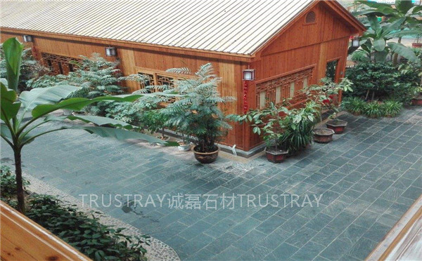 青石板是板巖的一種,學名叫做磨石瓦板巖,屬于沉積灰巖類,又稱作“石灰石”。青石板的質地密實,強度中等,易于加工,可采用簡單工藝鑿割成薄板或條形材,是理想的綠色建筑裝飾材料。